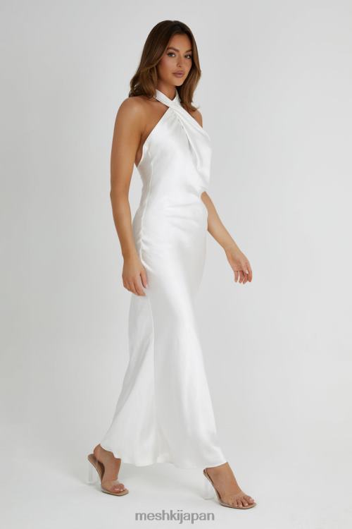ローラ・ホルターのサテンドレス Meshki 白 N80F6233 衣類