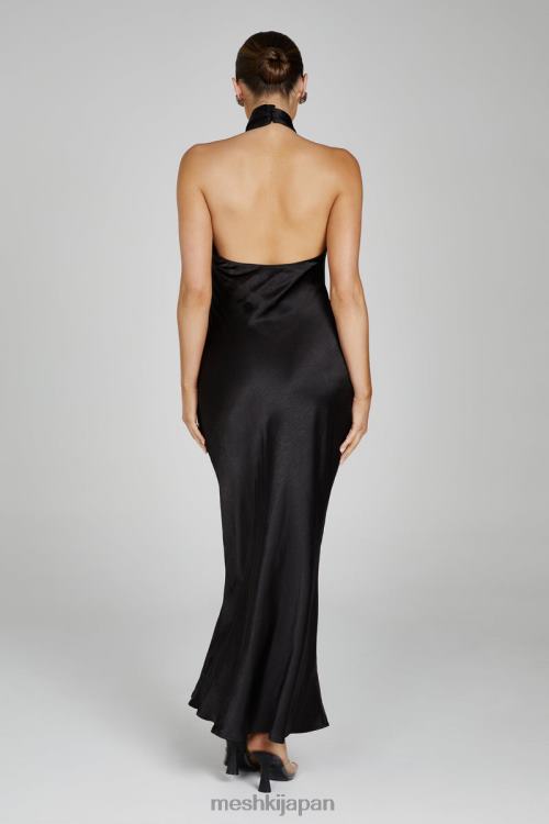 ローラ・ホルターのサテンドレス Meshki 黒 N80F6121 衣類