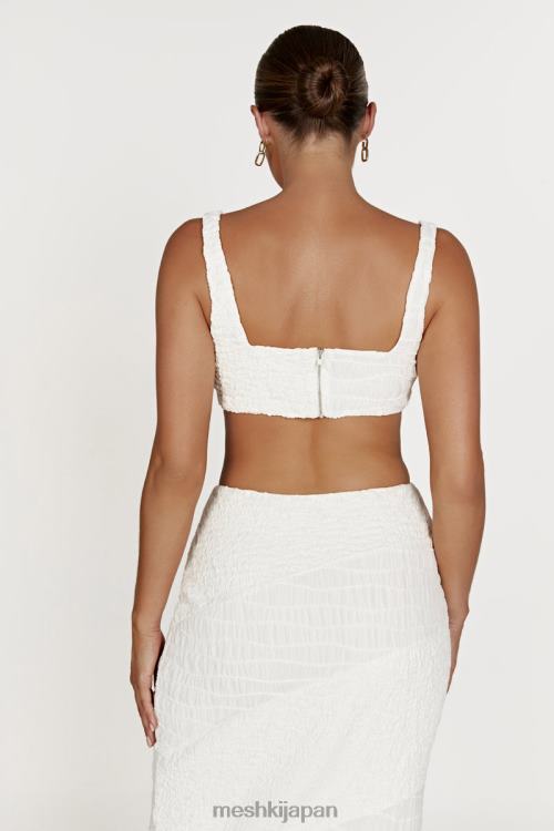 ニャー テクスチャード クロップ トップは、見栄えの良いスクエアネックラインとクロップドカットを備えたノースリーブのテクスチャード トップです。細身のショルダーストラップが肩甲骨とデコルテ周りを包み込み、高めの裾が肌を適度に見せてさりげなくセクシーに仕上げます。背中中央のジッパーエンクロージャーにより、一晩中体をしっかりと覆い、しっかりと押し込むことができます。ニャーテクスチャーのミディスカートと合わせて、マッチしたルックを演出しましょう。