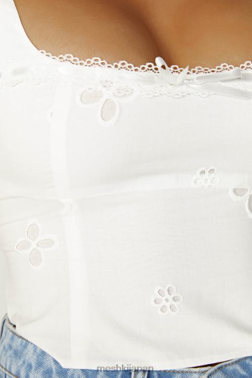 このノースリーブ コットン トップスは、スクエア スクープ ネックラインとサポート力のあるストラップが特徴のゴージャスなセミクロップド丈です。 、裏地はコットン100%。サイドには面ファスナーが付いた目に見えないジッパーがあり、ボディコンにぴったりとフィットします。このデザインには、胴体を囲む 2 本の垂直ラインも特徴で、引き締まった痩身効果を実現します。 100% コットン アングレーズで作られており、フロントにかわいいリボンのディテールが付いています。メラニーはこれ以上に甘くて快適です。メッシュデニムと合わせるとバランスの取れたビジュアルになります。