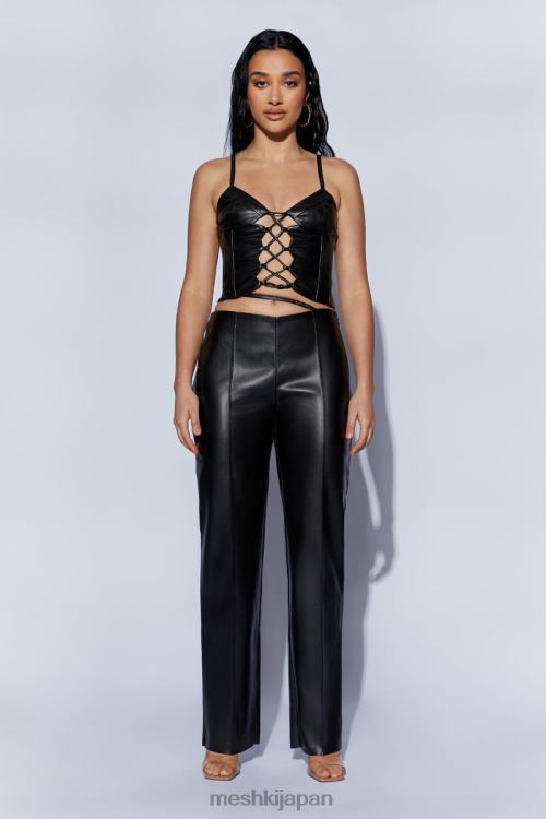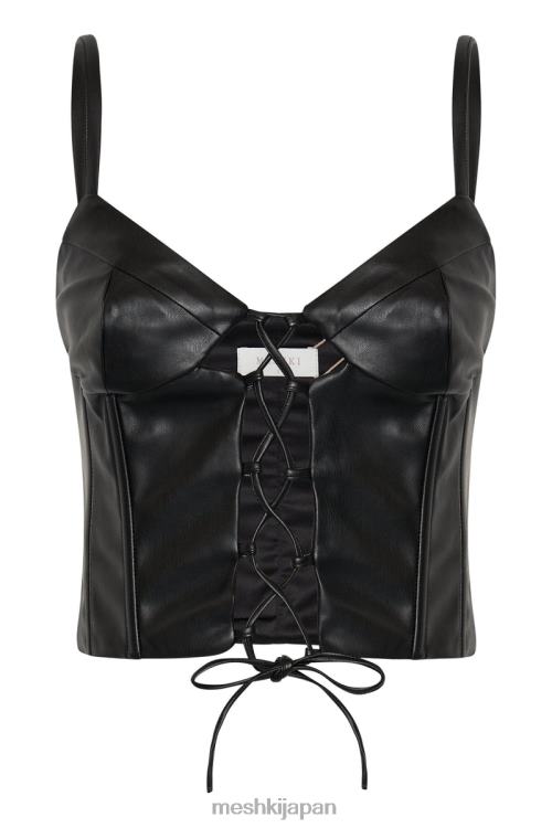 alaia レースアップコルセット PU トップ Meshki 黒 N80F61095 衣類