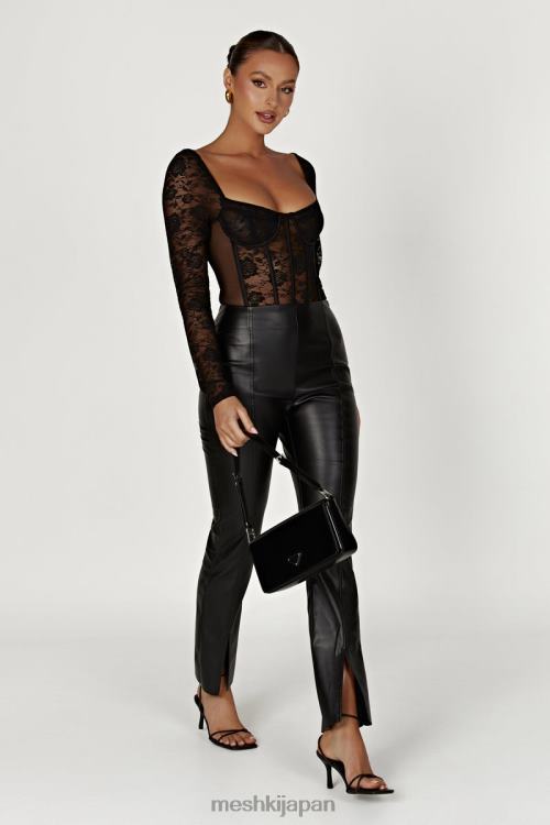 これは、究極のサポートのためのアンダーワイヤーブラと、輪郭のあるシルエットのためのコルセットボーンを備えた長袖レースボディスーツです。カップ部分のみメッシュ裏地とジャージ素材のマチを採用し、快適な着用感を実現しました。次のデートの夜には、ヴァネッサ フェイクレザー スプリット パンツを合わせてスタイリングしたり、メッシュ デニムでドレスダウンしたりしてみてはいかがでしょうか。