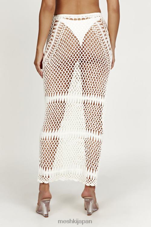 ボニーかぎ針編みマキシスカート Meshki 白 N80F61439 衣類