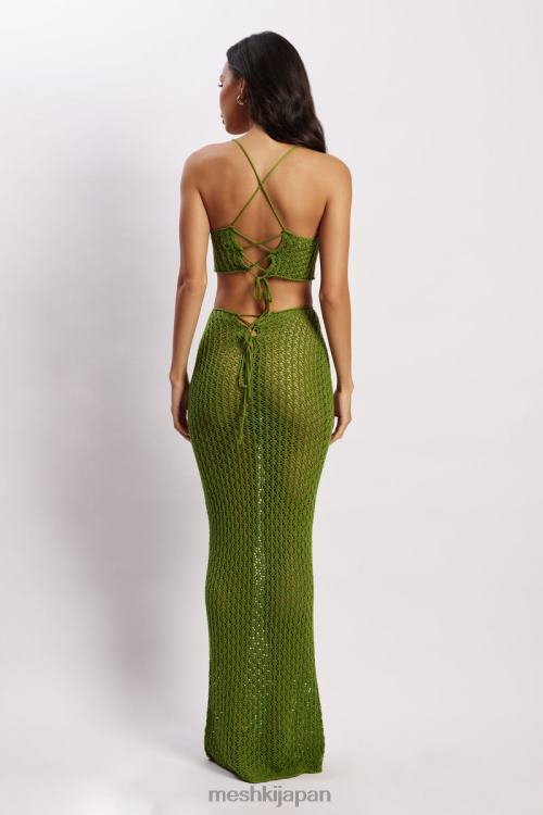 ロゼッラかぎ針編みマキシスカート Meshki 緑 N80F61613 衣類
