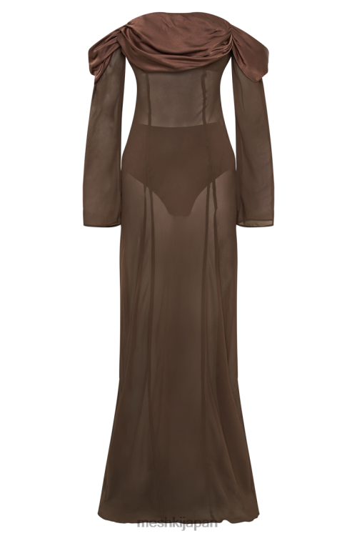 イヴァンナ オフショルダー シフォン マキシドレス Meshki モカ N80F651 衣類