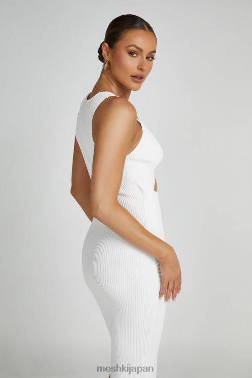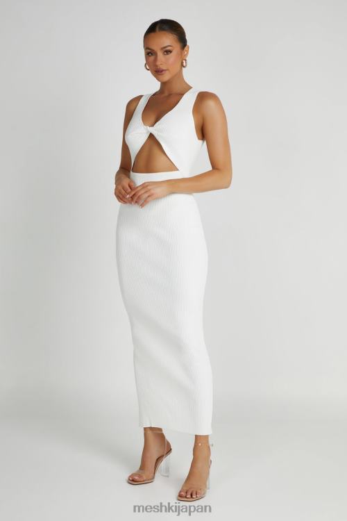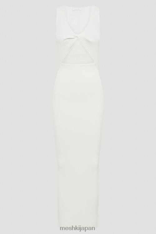 カエシャは、幅広のストラップ、深い V ネックライン、胸周りの大きな三角形のカットアウトが特徴のニット ノースリーブ ドレスです。胴体下部。スカートはマキシ丈のボディコンフィットで、体の曲線にぴったりフィットし、足首のあたりまでストレートな裾になっています。カスタムメッシュニット製造により、元の形状を失うことなく伸縮し、体にフィットします。中央のねじれた結び目は、このドレスを非常に注目を集めるものにする別のレベルの視覚的なディテールを追加します。