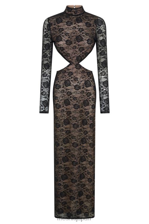 これは、メッシュの裏地とボディと後ろのネックバンドにボタンが付いているレースのマキシドレスです。サイドシームのスプリット、サイドのカットアウト、オープンバックが特別なドラマを加え、長さにより一日中着ていられるほど快適なドレスです。よりクラシックな外観を演出するには、モンロー クロス ヒールでステートメントを完成させてください。