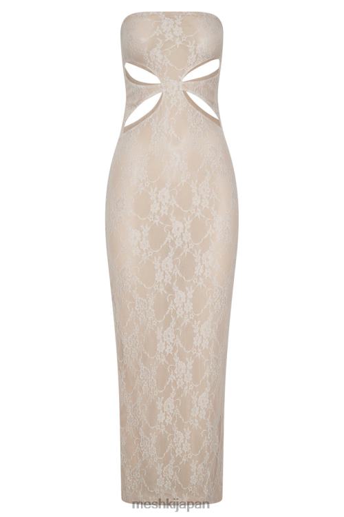 クリスタを紹介します。彼女は屈託がなく大胆で、根底に洗練された感覚を持っています。ストラップレスのネックラインが特徴のこのカットアウト バンドゥ マキシ ドレスは、前後にダイヤモンドのカットアウトが施され、全体に繊細なレースのオーバーレイが施されています。サンセット ディナー クルーズや街での自然な夜にぴったりの、ゴールド ジュエリーとストラップ付きヒールのスタイルです。