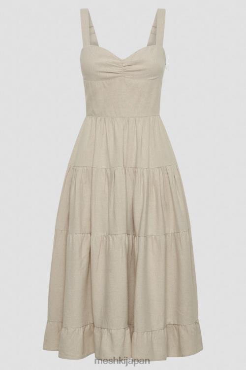 アドリアナは、ティアードスカート、セミスイートハートネックライン、かなり幅広のショルダーストラップを備えたリネンのノースリーブミディドレスです。上部の身頃は、着用者の形を美しく見せるために、バストの中央にわずかなシャーリングが施されています。ショルダーストラップの後ろにはアジャスターが内蔵されており、より快適でカスタマイズされたフィット感を実現します。スカートはゆったりとした流れるような 3 段スカートで、甘いコテージコアの雰囲気を醸し出しています。暖かい季節のクローゼットの必需品です。カラフルなバングルと、フェイクレザーのヒールを包み込むネーブを組み合わせてください。