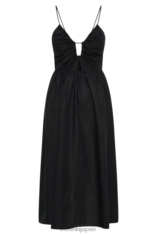 マグデレナ カットアウト リネン ミディドレス Meshki 黒 N80F618 衣類