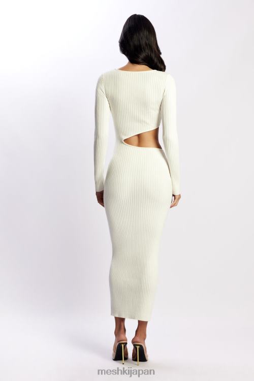 gaia カットアウト アシンメトリー ニット ミディドレス Meshki 白 N80F6486 衣類