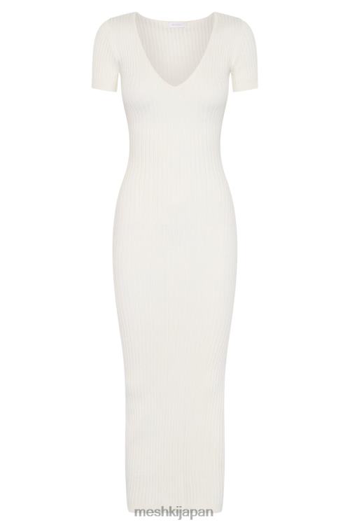 ホーム| コレクション| ミディドレス| nina 半袖ニットミディドレス Meshki 白 N80F6488 衣類