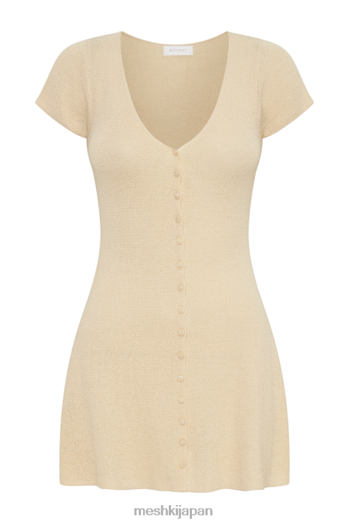 paula ボタン付きニット ミニドレス Meshki 小麦 N80F68 衣類