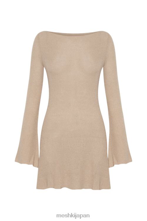 ソフトで夢のような - ボヘミアンビーチのベイビーの色合い - zahra は、快適なコットンブレンドと長い溝付きの袖に包まれたカジュアルなエレガンスです。閉じたストレートカットのネックラインが胴体を長くし、肩の形を強調します。メッシュキのコットン、アクリル、ナイロン生地のカスタムブレンドは、あなたの体型を完璧にフレームに収めながら快適に涼しく感じさせます。ひざ上まで届く切りっぱなしの裾スカートと、溝付きの長い袖が、軽やかでロマンチックなシルエットを生み出します。 zahraは重要なイベントには欠かせないアイテムです。ヒールと合わせてふくらはぎをさらに強調してください。